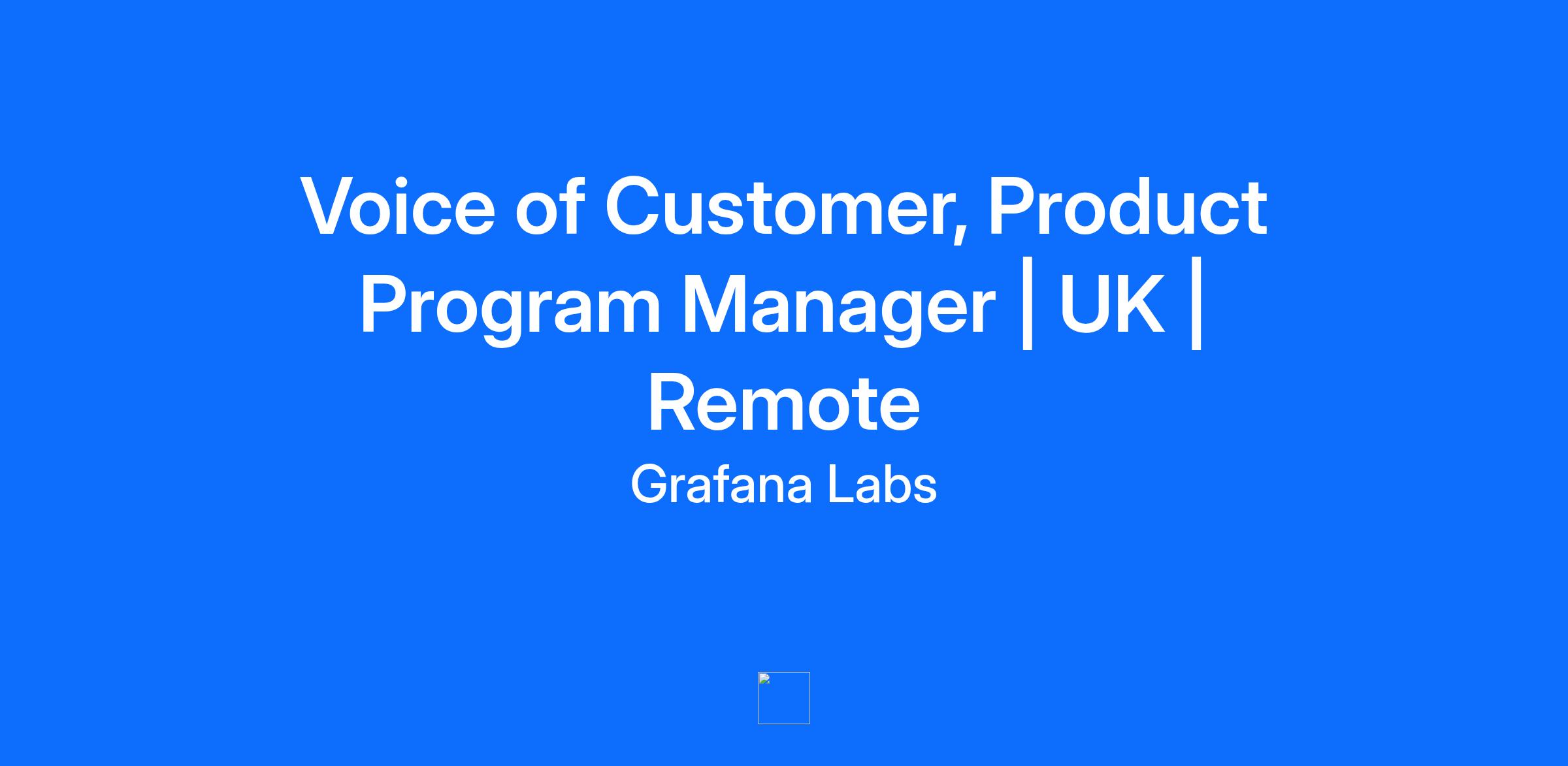 Grafana Labs is a remote-first, open-source powerhouse. There are more than 20M users of Grafana, the open source visualization tool, around the globe, monitoring everything from beehives to climate change in the Alps. The instantly recognizable dashboards have been spotted everywhere from a NASA launch and Minecraft HQ to Wimbledon and the Tour de France. Grafana Labs also helps more than 3,000 companies -- including Bloomberg, JPMorgan Chase, and eBay -- manage their observability strategies with the Grafana LGTM Stack, which can be run fully managed with Grafana Cloud or self-managed with the Grafana Enterprise Stack, both featuring scalable metrics (Grafana Mimir), logs (Grafana Loki), and traces (Grafana Tempo). We’re scaling fast and staying true to what makes us different: an open-source legacy, a global collaborative culture, and a passion for meaningful work. Our team thrives in an innovation-driven environment where transparency, autonomy, and trust fuel everything we do. You may not meet every requirement, and that’s okay. If this role excites you, we’d love you to raise your hand for what could be a truly career-defining opportunity. This is a fully remote position and we're considering candidates in the UK. The opportunity As the Voice of Customer - Product Program Manager, you will play a central role in scaling and operationalizing the Voice of Customer (VoC) program, the connective layer between customer feedback and product decision-making. You will partner closely with Product Managers, Engineering Managers, and R&D leadership to ensure customer insights meaningfully influence strategy and execution. This role also provides strong exposure to how product decisions are made, making it an excellent opportunity for someone who aspires to progress their career into R&D or Product-focused roles over time. This role reports directly to the Director of Voice of Customer. Success in this position requires a high degree of agency, initiative, and proactive problem-solving. You should be someone who identifies opportunities to improve workflows, closes gaps before being asked, and confidently drives cross-functional alignment in a distributed remote environment. What You’ll Be Doing: Manage VoC program operations across all feedback channels (feedback portal, community, support, slack and many more) Evaluate, triage, and prioritise customer feedback; collaborating with PM’s when insights come in that you think could do with their immediate attention Translate raw feedback into insights identify themes, trends, and actionable opportunities for product teams Collaborate with Product Managers, Engineering Managers, and R&D leadership to ensure feedback meaningfully shapes planning and roadmaps Use AI and automation tools to streamline analysis, enrich insights, and simplify operational workflows Advocate for the customer voice in cross-functional meetings and product discussions Evolve VoC tooling, including the customer-facing portal and internal workflows, to drive efficiency and clarity Ensure transparency and closure: help customers understand where their feedback lands and how it is acted upon Continue to refine and track VoC metrics (e.g., feedback volume, themes, response times, implementation outcomes) and communicate impact across the organisation Proactively identify areas for program optimisation and introduce process improvements without waiting for direction. What makes you a great fit: Experience in product management, product operations, customer insights/research, customer support or customer success, ideally within a SaaS or developer-focused environment Strong ability to synthesize qualitative customer feedback into themes and actionable insights Excellent cross-functional collaboration skills with the ability to influence without authority across Product, Engineering, Product Design, Support, and all areas of GTM Exceptional written and verbal communication skills; able to craft clear, concise narratives from complex input High personal agency, ownership, and initiative, you proactively solve problems and optimise processes as they arise Comfort working in a remote, asynchronous, globally distributed environment A desire to grow into R&D or Product roles over time, supported by close collaboration with Product Managers, Engineering Managers, and R&D leadership Comfortable using AI for automation and analysis, including using AI tools to accelerate insight generation, summarise qualitative data, or optimise operational workflows Experience with feedback tooling, insight management systems, or user research processes (a plus). In the UK, the base compensation range for this role is GBP 91,755 - GBP 110,106. Actual compensation may vary based on level, experience, and skillset as assessed throughout the interview process. All of our roles include Restricted Stock Units (RSUs), giving every team member ownership in Grafana Labs' success. We believe in shared outcomes—RSUs help us stay aligned and invested as we scale globally. *Compensation ranges are country specific. If you are applying for this role from a different location than listed above, your recruiter will discuss your specific market’s defined pay range & benefits at the beginning of the process. Why You’ll Thrive at Grafana Labs: 100% Remote, Global Culture - As a remote-only company, we bring together talent from around the world, united by a culture of collaboration and shared purpose. Scaling Organization – Tackle meaningful work in a high-growth, ever-evolving environment. Transparent Communication – Expect open decision-making and regular company-wide updates. Innovation-Driven – Autonomy and support to ship great work and try new things. Open Source Roots – Built on community-driven values that shape how we work. Empowered Teams – High trust, low ego culture that values outcomes over optics. Career Growth Pathways – Defined opportunities to grow and develop your career. Ap