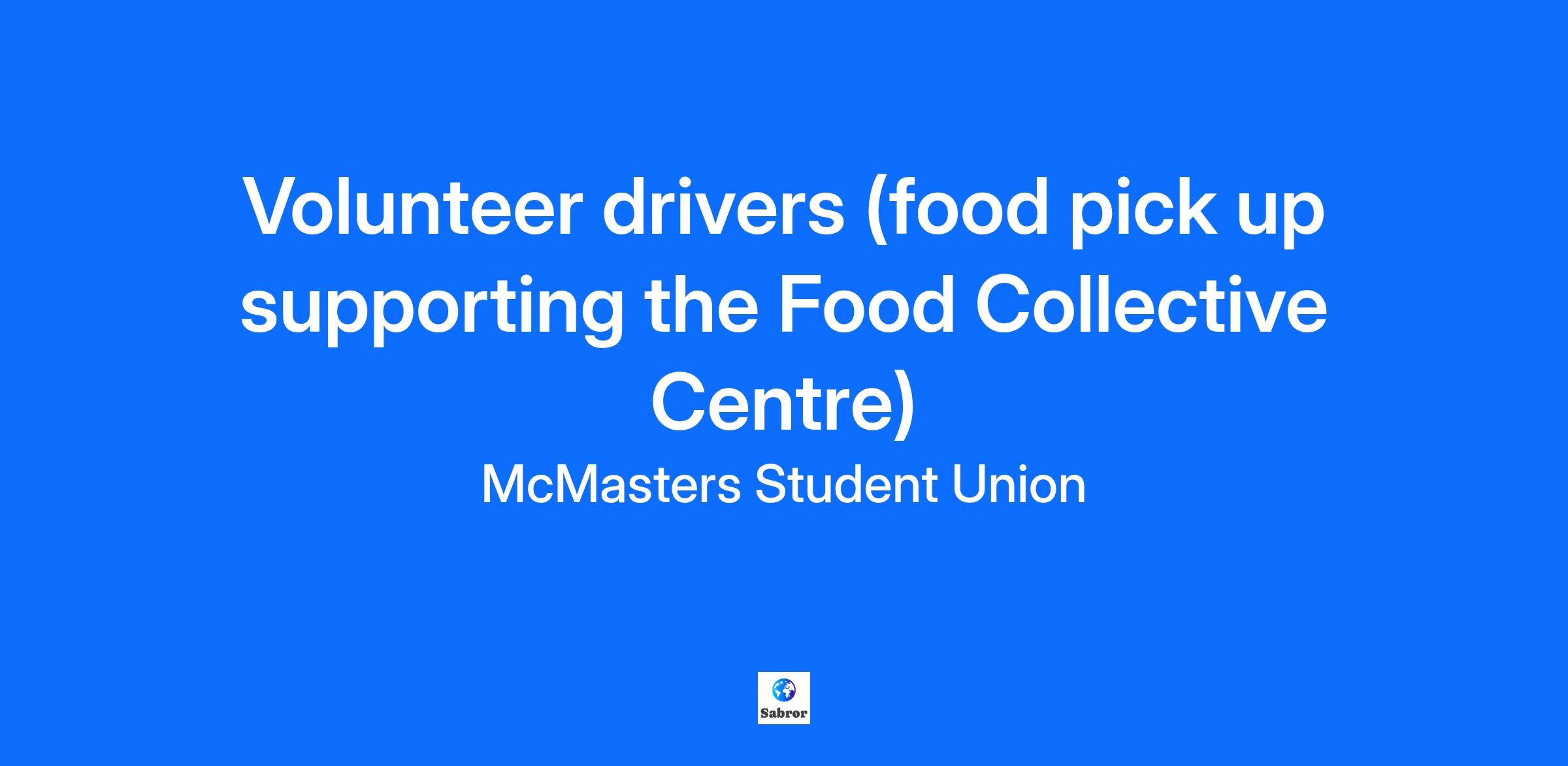We are looking for Volunteer drivers with access to a car on a regular basis. This project is a part of our food inaccessibility on campus through the Food Collective Centre. By signing up, you'll be directly supporting students and community members in accessing nutritious food. This opportunity is open to all McMaster students. Volunteers will pick up food donations from Fortinos (1579 Main Street Hamilton) and deliver them to the FCC located in the Hub, on Campus. Timing can be flexible, but we would need reliability once you confirm a time. Please complete the attached form to confirm your interest and we will be in touch. Sign up sheet This posting will remain open until September 27th, however, it may close early if we have an overwhelming response. We thank everyone for their interest in helping us support students and the McMaster community.