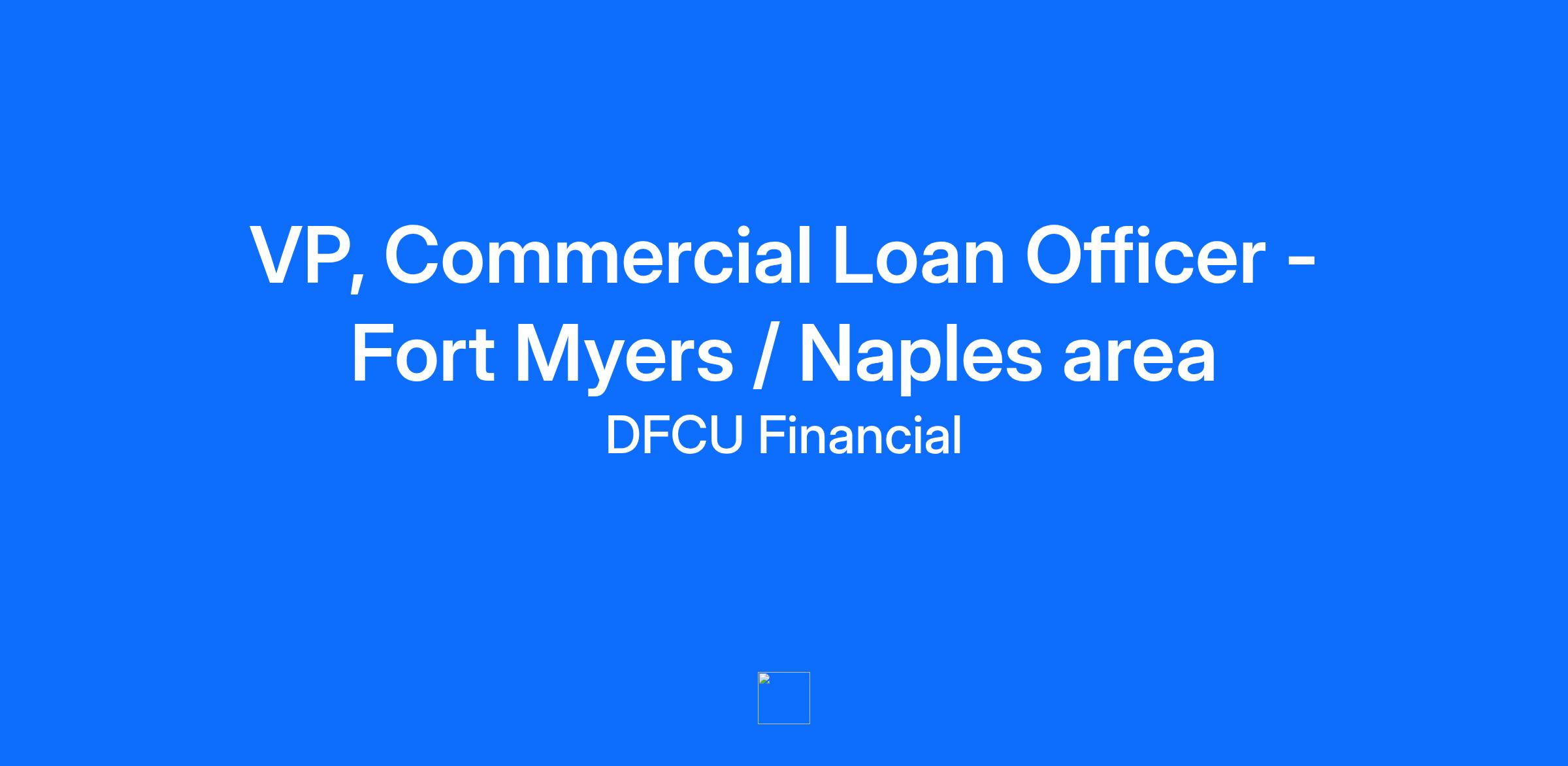 Join the DFCU Financial team today, and discover the benefits, rewards and development opportunities from one of the largest and best managed credit unions in the country. Do you get fired up helping businesses win? Do you thrive on fast-moving teamwork that matches your passion and drive? Do you need leadership that clears the path so you can focus on growing relationships and closing deals? As VP, Commercial Loan Officer, you’ll be the driving force behind business development and building lasting client relationships in the Fort Myers & Naples markets. We fuel growth—you close deals. Let’s build our community together. Join our team. The Opportunity: We are seeking a VP, Commercial Loan Officer to join the DFCU Financial team in the Fort Myers / Naples, FL area. What You'll Do: Business Development & Relationship Management • Proactively identify and develop new business banking relationships with a focus on deposit and lending growth. • Grow and manage a portfolio of commercial clients, delivering tailored financial guidance and creative lending solutions that meet their evolving needs. • Connect clients with a full suite of business banking services including lending, deposits, Treasury Management, and SBA programs to help their businesses thrive. • Build strong partnerships with business owners, centers of influence, and professional networks to generate referrals and drive meaningful growth. • Represent DFCU in the community and make a real and lasting impact by helping local businesses succeed. Portfolio Management & Credit Expertise • Analyze and underwrite credit requests in accordance with DFCU’s policies and risk appetite, structuring thoughtful and strategic solutions. • Monitor loan covenants, past due accounts, and renewal timelines to ensure portfolio health and risk mitigation. • Collaborate closely with internal partners—including Business Banking Assistants and Loan Documentation teams—to streamline processing and deliver an exceptional client experience. Team Collaboration & Strategic Engagement • Work cross-functionally with Retail, Treasury, and Lending teams to deliver value through joint calling efforts and holistic financial solutions. • Prepare detailed call plans and post-call reviews that translate client goals into actionable next steps. • Stay informed on market trends, industry shifts, and client opportunities to remain a trusted advisor and thought partner. Operational Excellence • Ensure compliance with internal policies, credit standards, and regulatory requirements. • Complete all required professional development and compliance training to support continuous growth. What You'll Need: Bachelor's degree in business, finance or related field. Seven years lending or sales experience in the financial services industry. Three - five years commercial lending and credit underwriting experience. Demonstrated high performance in sales goal attainment. Demonstrated community involvement. High level of accuracy and attention to detail. Excellent interpersonal skills, including effective verbal and written communication. What We Offer: Incentive/bonus program Potential for a hybrid work schedule 401k plan match, dollar for dollar up to 4% 401k additional employer contribution after one year at 5% Medical, dental and vision insurance effective date of hire Health savings account (HSA) Flexible spending accounts for medical and dependent care expenses Adoption assistance for qualified expenses maximum $10,000 per child Wellness initiatives and reimbursements Pre-paid legal services plan Identity protection plan Accident supplemental plan Short & long term disability plans paid for by company Company provided basic life insurance of $50,000 plus supplemental for employee, spouse and child Pet Insurance Free financial planning assistance Numerous fun employee events throughout the year Volunteer and community engagement opportunities Employee loan discounts (closed-end loans) Discounts with local and national companies through DFCU Perks Service / anniversary awards Employee discounts for company logo wear Employee referral payouts for recruiting your friends and family Paid lunch time Tuition reimbursement / Education assistance Ongoing training opportunities Leadership development program Paid time off Paid holidays (13 per year) Flexible scheduling for students Equal Opportunity Employer / Disabled / Veterans