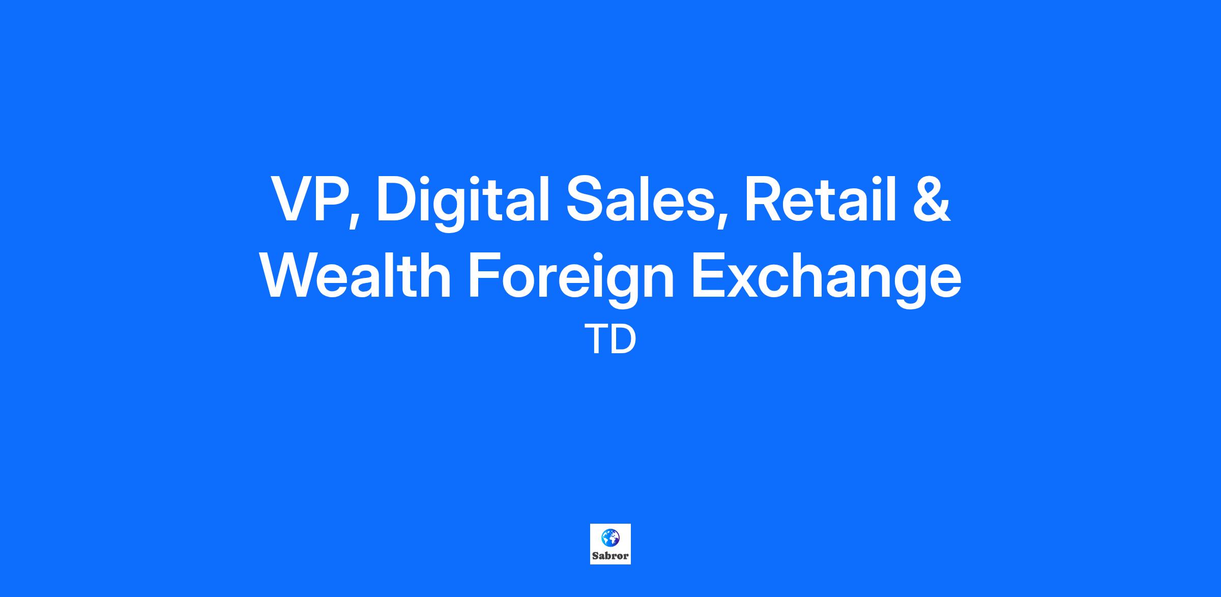 VP, Digital Sales, Retail & Wealth Foreign Exchange