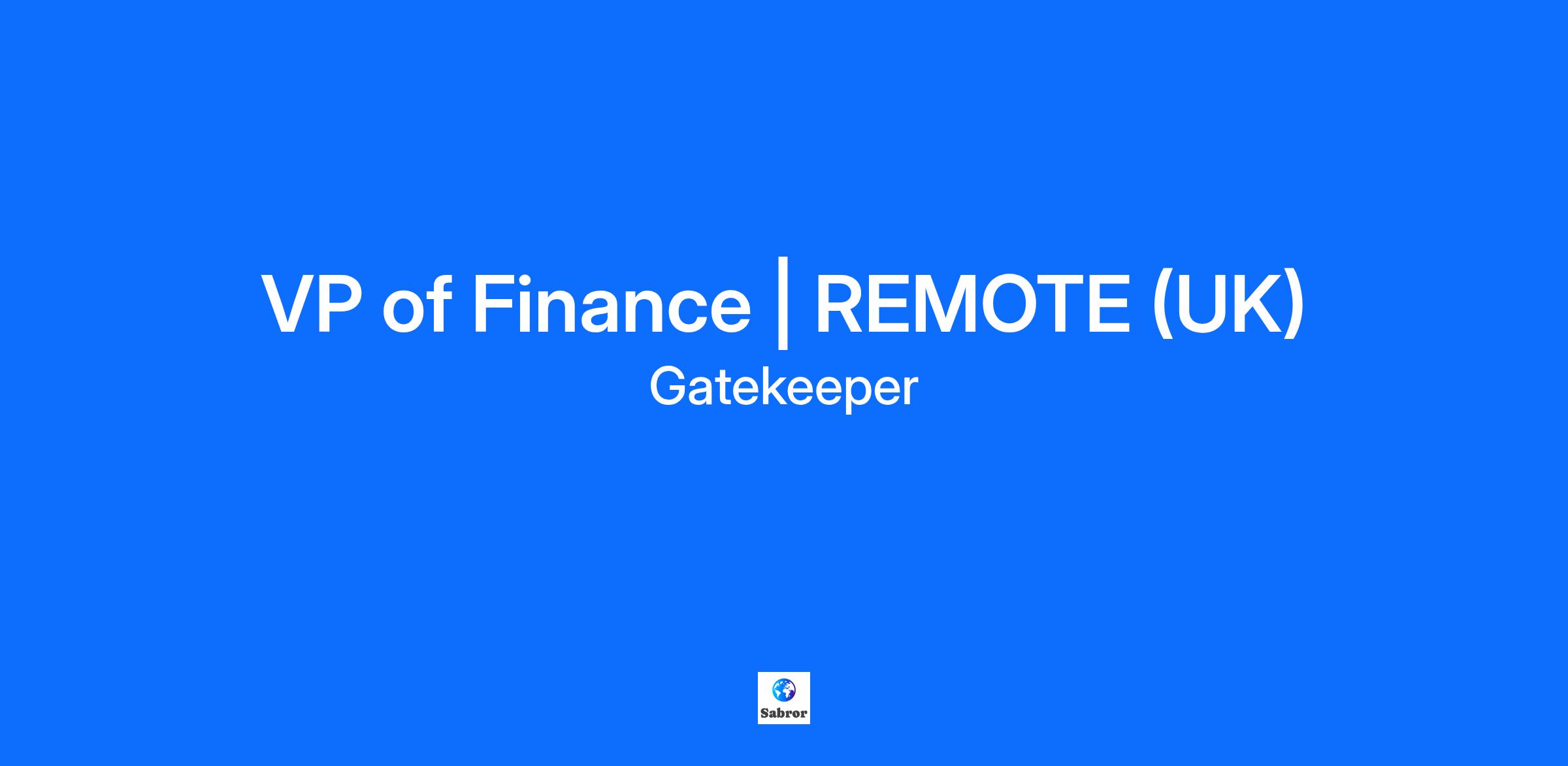 Due to our strong global growth and private equity investment from Vista Equity Partners we are looking for an experienced, hands-on and highly collaborative VP of Finance with SaaS-specific finance experience to oversee all of Gatekeeper’s financial operations, providing support across areas from accounting and departmental budgets, to banking operations, cash flow and risk management.
