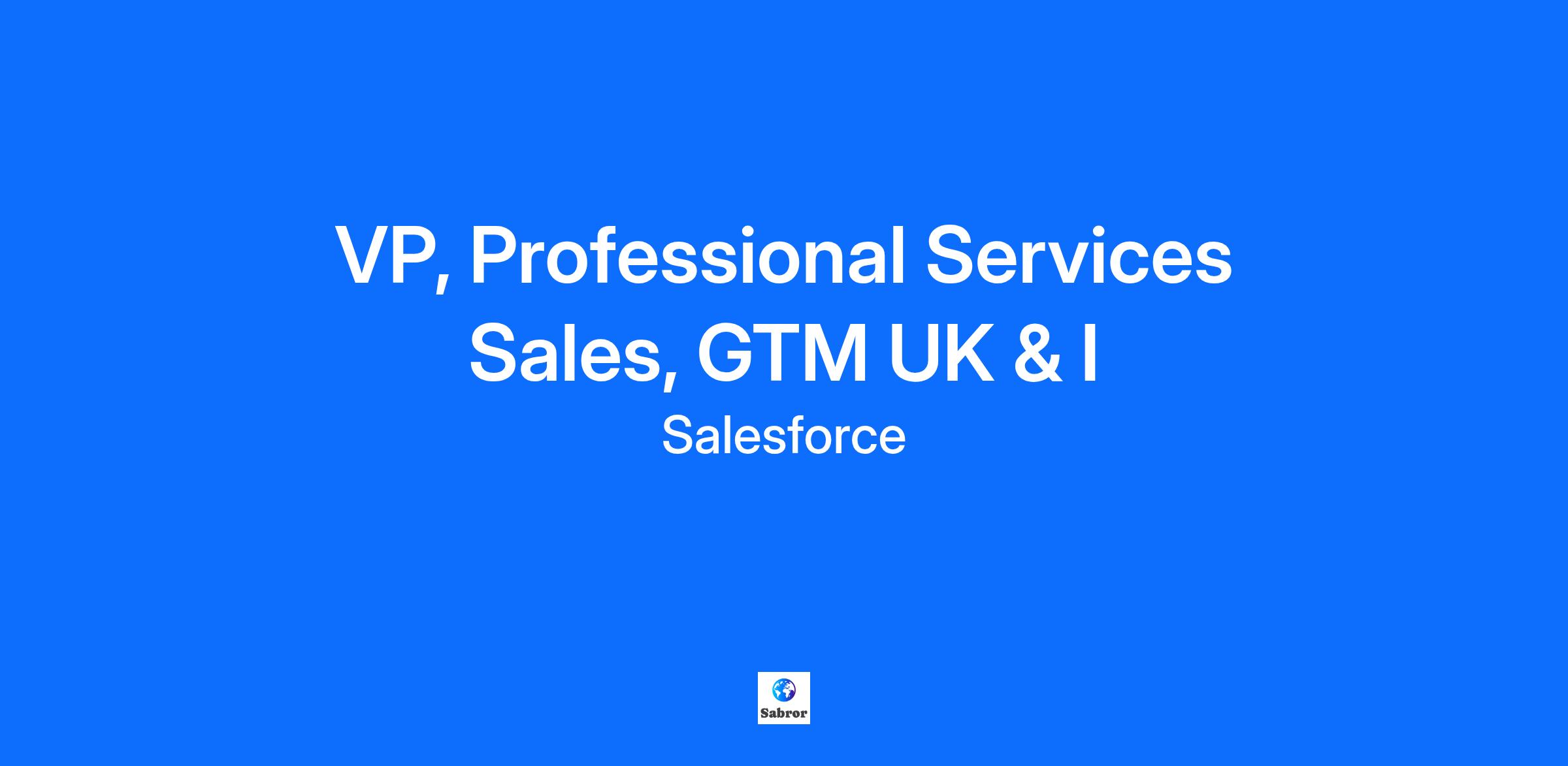 To get the best candidate experience, please consider applying for a maximum of 3 roles within 12 months to ensure you are not duplicating efforts. Job Category Customer Success Job Details About Salesforce Salesforce is the #1 AI CRM, where humans with agents drive customer success together. Here, ambition meets action. Tech meets trust. And innovation isn’t a buzzword — it’s a way of life. The world of work as we know it is changing and we're looking for Trailblazers who are passionate about bettering business and the world through AI, driving innovation, and keeping Salesforce's core values at the heart of it all. Ready to level-up your career at the company leading workforce transformation in the agentic era? You’re in the right place! Agentforce is the future of AI, and you are the future of Salesforce. The Professional Services Sales Leader should be a proven, passionate, strategic general manager of solution sales. This individual will lead and drive a regional team of Account Partners (AP), with several Senior Directors in their reporting line, ensuring bookings and revenue targets are achieved for Professional Services. The individual must be a strategic problem solver with outstanding strategic, enterprise, commercial, and cross-functional skills, they should demonstrate high energy, and have strong sales management and leadership experience. This role requires a forward-thinking strategist who understands the profound impact of Generative AI, new platform tooling, and Agentforce solutions on customer digital transformation roadmaps. You will be responsible not only for meeting targets but for positioning our Professional Services as the essential partner for customers navigating the next wave of intelligent business applications. Success in this role hinges on outstanding strategic, commercial, cross-functional leadership, and a deep commitment to fostering a highly motivated, high-performing sales culture. The leader will also be a valuable contributor to the Professional Services Sales (GTM) and product strategies, sharing customer insights and perspectives and aligning with Salesforce corporate objectives. Additionally, this individual should meet with C-level client executives on a regular basis and maintain strong relationships with internal peers in core sales, product, and operations to ensure client needs are being met. The primary measurements of success for this role will be on target achievement of services bookings and revenue and margin. Responsibilities: Deliver on bookings, revenue and margin targets, ensure organisational health and high customer satisfaction goals as a regional leader. Build, grow, lead and manage a team of qualified customer-focused Account partners to build long-lasting customer relationships and deliver customer business value Engage at the C-Level with customers and focus on consultative selling opportunities Build a strong relationship with the License Sales organisation and regional Alliances/Partner organisations that are instrumental to success and pipeline building Lead and coach direct reports in sales strategy, pipeline management, opportunity management and career planning/development. Help grow and maintain a healthy regional partner ecosystem to drive sales, technology adoption, and successful deployment of Salesforce Mentor and develop the entire services sales team which includes recruiting, hiring and training as needed. Conduct weekly forecast meetings and coach direct reports on strategies to drive closings and run the business. Monitor sales activity and track results Report on sales activity and forecast to Senior Sales Management Support other Geo RVPs and APs by participating in and leading new and existing C-level client meetings; engage corporate resources as required to clearly communicate Salesforce's solutions and generate business value for our customers Required Qualifications & Skills: Sales management and consultative selling experience at VP level (manager of sales managers), with a proven track record of leading a large team in a technology sales environment Proven track record of over-achieving quota (top 10-20% of company), in a similar enterprise software application firm or System Integrator selling subscription based products Demonstrated ability to develop and maintain C-level relationships where you are recognized as a trusted advisor Solid understanding and experience of CRM and AI Strong, demonstrated written and verbal communication skills. Excellent presentation and listening skills Highly collaborative and excels in a complex, matrixed environment Team player with strong interpersonal skills Ability to thrive in a fast-paced, unpredictable environment Strong customer references Degree or relevant work experience required Leadership Qualities: TRUST: Trust in leadership style, behaviour, with customers, partners and teams PASSION: Passionate about Customer Success BEGINNERS MIND: Always learning, approaches each interaction with open mind, great listener and hands-on THOUGHT LEADER: Strong point of view and executive presence. Confident, but not arrogant, great storyteller URGENCY: Ability to move fast and drive business value and results OHANA: Embodies Salesforce Values: A team player that everyone enjoys working with and has a generous heart ADAPTABLE: Excels in high levels of uncertainty and change Unleash Your Potential When you join Salesforce, you’ll be limitless in all areas of your life. Our benefits and resources support you to find balance and be your best, and our AI agents accelerate your impact so you can do your best. Together, we’ll bring the power of Agentforce to organizations of all sizes and deliver amazing experiences that customers love. Apply today to not only shape the future — but to redefine what’s possible — for yourself, for AI, and the world. Accommodations If you require assistance due to a disability applying for open positions please submit a request