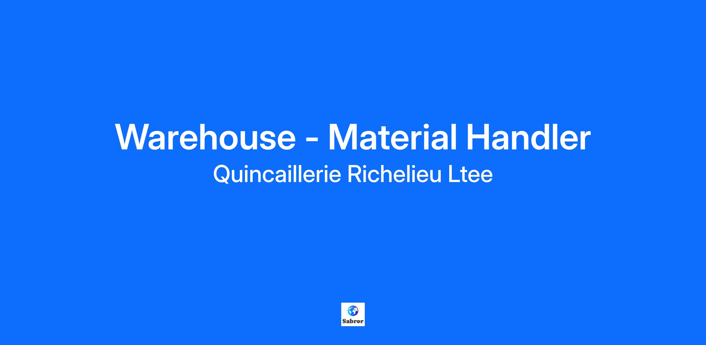 Richelieu Hardware is a market leader in the distribution of specialty hardware, woodworking supplies, and specialty construction products, serving furniture manufacturers, cabinetmakers, renovation superstore chains, and purchasing groups. We are currently seeking a General Warehouse Associate to join our Lumber and Sheet Goods Department. The successful candidate will assist with general warehouse duties efficiently and accurately. Responsibilities include the following (other duties may be assigned as needed): * Provide superior customer service and retrieve orders. * Assist in gathering materials to build loads/orders. * Assist truck drivers to load various building supplies onto trucks for delivery. * Operate the forklifts once training and certification has been achieved. * Help unload transport trucks with product. * Utilize Warehouse Management System (WMS) software for inventory tracking and order processing. * Practice proper material handling techniques to ensure minimal damage to inventory. * Keep the workspace area clean and presentable in appearance. Qualifications: * Current Forklift Certification. * Good knowledge of safe working procedures. * Detail oriented with strong organizational skills. * Ability to perform at a high level in a fast paced, demanding work environment. * Professional, courteous, and punctual with a focus on customer service. * Must have a positive attitude and be a team player. * Completion of High School Diploma or equivalent. * 1-2 years previous warehouse work experience. * Good communication, organizational, time management and mathematical skills. * Dependable and reliable. * RF Scanner and WMS software experience preferred. * Experience and knowledge in building materials. Physical Demands: The physical demands described here are representative of those that must be met by an employee to successfully perform the essential functions of this job. * Moving frequently, standing and walking. * Frequent reaching, holding, and grasping with hands when loading and unloading product. * Frequent pushing, pulling, kneeling, bending, and squatting. * Frequent lifting of up to 50 lbs. Occasional lifting of up to 115 lbs. * Ability to work outdoors in various weather conditions. * A Canadian flagship: As a company with proud roots in Quebec but present in Canada and the United States, we enjoy excellent recognition and a great reputation. * A mature and stable company: With more than 50 years of experience in the market, we offer the trust and organizational strength needed for a safe working environment. * Continuous growth: With strong financial health, our business is constantly expanding, opening future opportunities for all. * Competitive compensation: We offer competitive base compensation based on the market. * Opportunity to become a shareholder: We believe in the involvement of our employees and offer them the opportunity to become shareholders. * Work-life balance: We value a healthy and flexible work environment, allowing everyone to achieve a work-life balance. * Quality products: We are committed to offering products of exceptional quality, thus satisfying our most demanding customers. * Opportunity to grow: We encourage career opportunities and continuing education for the professional development of our employees. Job Type: Full-time Expected Hours: 40 per week Schedule: 8-hour shift Monday to Friday