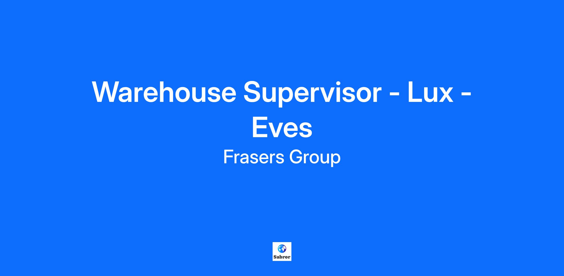 Warehouse Supervisor - Lux -Eves