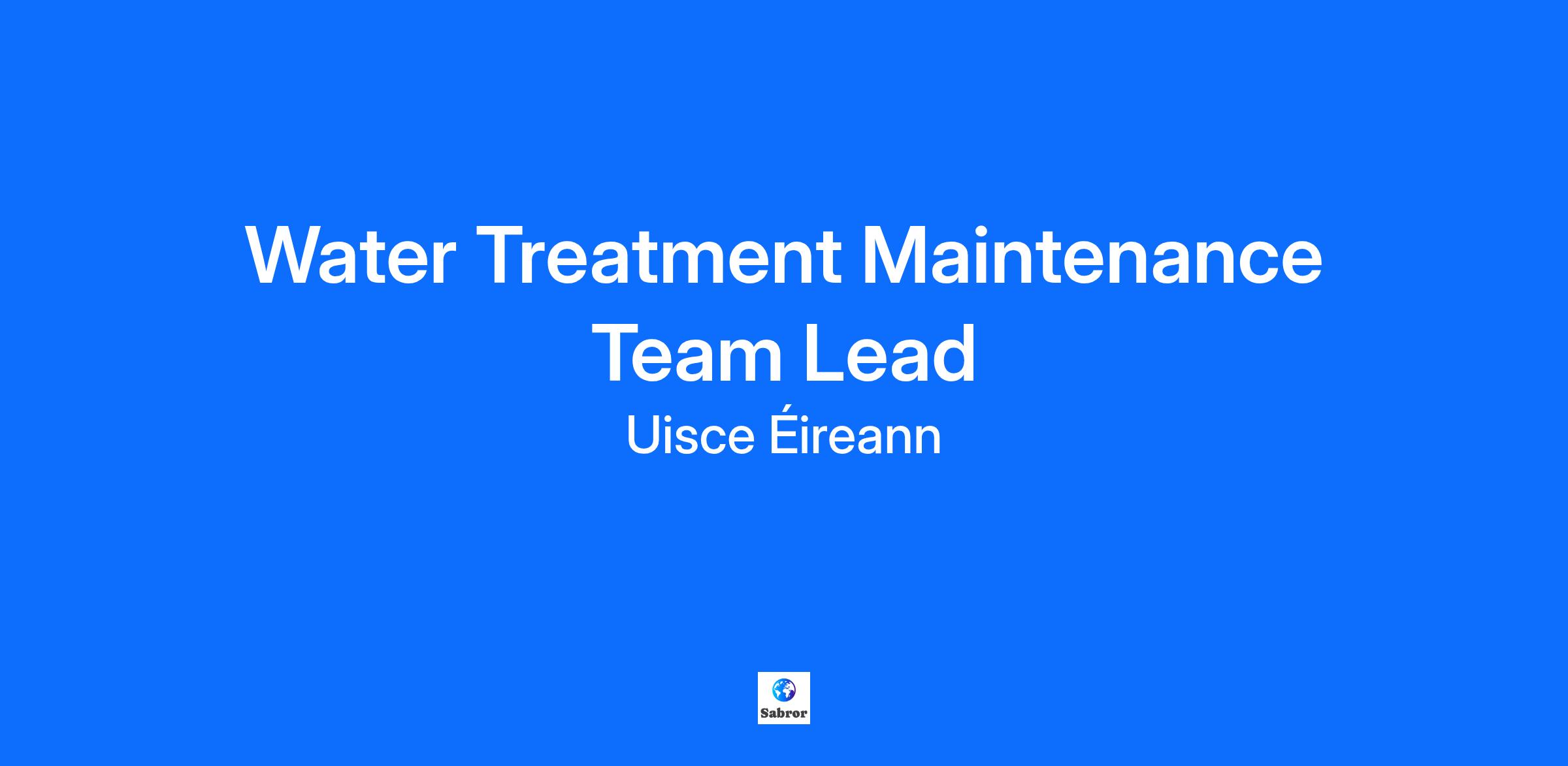Agus é/í freagrach don Bhainisteoir Cóireála Uisce, tá sainchúram ag Ceannasaí na Foirne Cothabhála um Chóireáil Uisce ar fud limistéar geografach agus tá sé/sí freagrach as maoirseacht a dhéanamh ar ghníomhaíochtaí meicniúla agus leictreacha (M&E) beartaithe agus frithghníomhacha ar fud bhonn na sócmhainní cóireála uisce. Beidh an Ceannaire Foirne (M&E Oibríochtaí Cóireála Uisce) freagrach as foireann oibrithe cothabhála um chóireáil uisce a stiúradh agus as a bhfeidhmíocht a bhainistiú, agus as an treoir agus na scileanna atá riachtanach a chur ar fáil dóibh chun a chinntiú go gcloítear leis an reachtaíocht ábhartha, agus an méid sin á dhéanamh laistigh den bhuiséad atá leagtha amach.