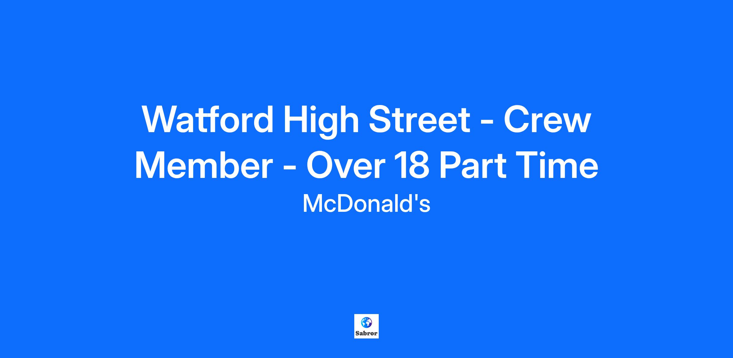Watford High Street - Crew Member - Over 18 Part Time