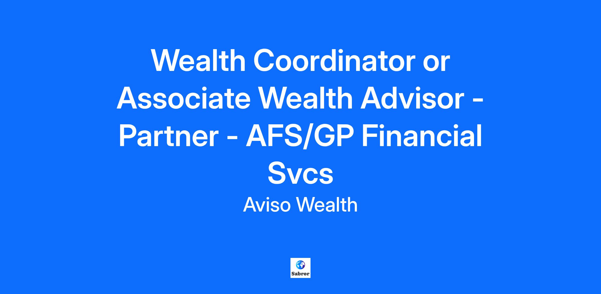 Wealth Coordinator or Associate Wealth Advisor - Partner - AFS/GP Financial Svcs