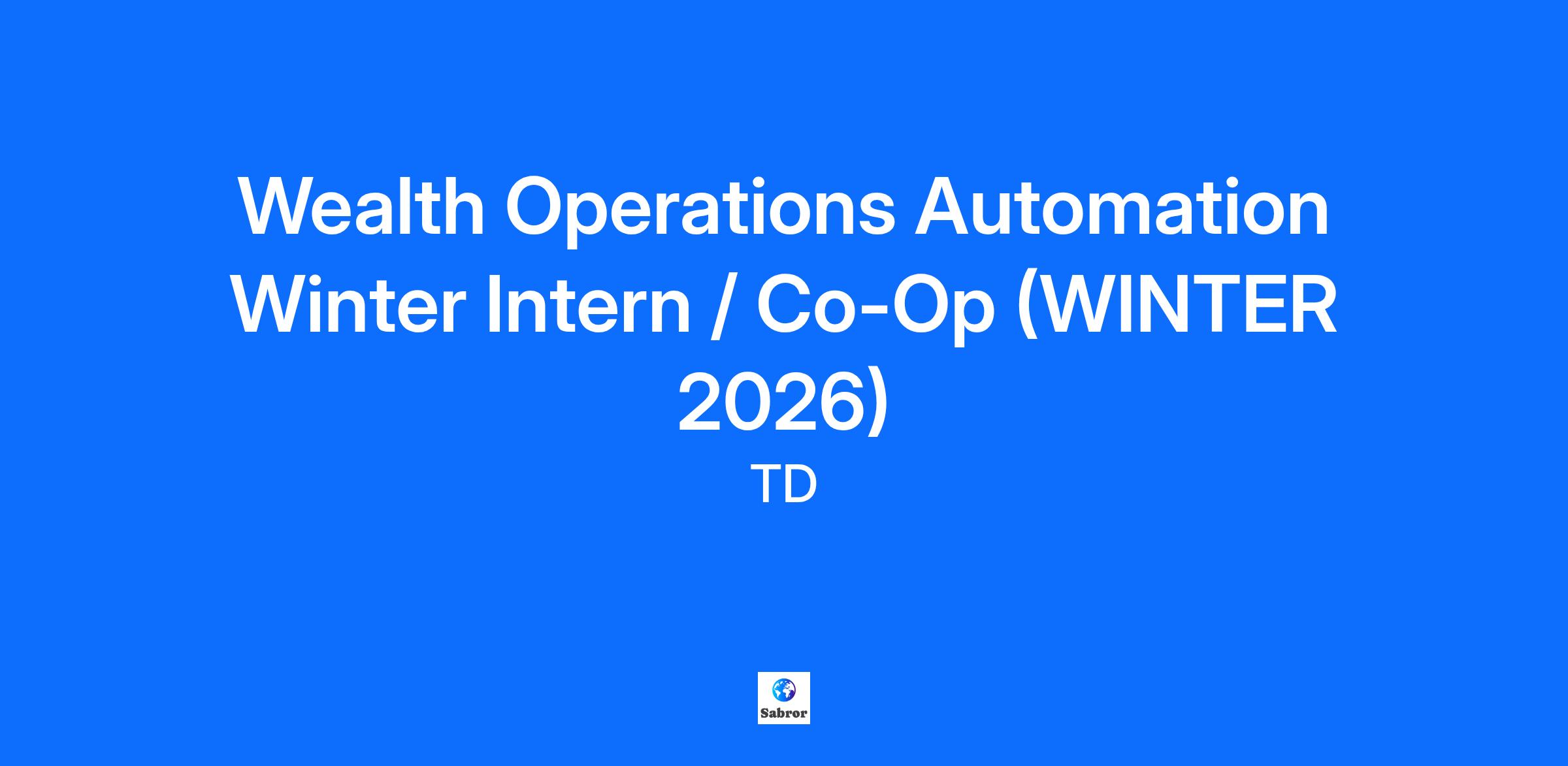 Role Type: Internship/Co-op Work Term: Winter/Term 2 Work Location: Toronto, Ontario, Canada Hours: 37.5 Pay Details: $48,000 - $68,000 CAD TD is committed to providing fair and equitable compensation opportunities to all colleagues. Growth opportunities and skill development are defining features of the colleague experience at TD. Our compensation policies and practices have been designed to allow colleagues to progress through the salary range over time as they progress in their role. The base pay actually offered may vary based upon the candidate's skills and experience, job-related knowledge, geographic location, and other specific business and organizational needs. As a candidate, you are encouraged to ask compensation related questions and have an open dialogue with your recruiter who can provide you more specific details for this role. Job Description: Company Overview Tell us your story. Don’t go unnoticed. Explain why you’re a winning candidate. Think “TD” if you crave meaningful work and embrace change like we do. We are a trusted North American leader that cares about people and inspires them to grow and move forward. Stay current and competitive. Carve out a career for yourself. Grow with us. Here’s our story: jobs.td.com TD's Colleague Promise: A better you. A better us. A more confident you means a stronger us. We empower you to grow your skills, gain new perspectives, and create impact at work and in your community. That’s our unique and inclusive culture. Co-op and Internship opportunities allow you to gain valuable work experience across a number of the businesses at TD. You will work with experienced colleagues, receive world class training, and be part of a community of students across TD, where you will have an impact, grow as individual and experience our culture of care. Department Overview TD Wealth Operations is part of Wealth Shared Services and is the operational engine of TD Wealth, acting as a centre of excellence for core processes that underpin key moments in our clients' relationship with the Wealth business, including onboarding, transfer services, trade and cash management processing, and delivering client statements and communications. Wealth Operations supports all TD Wealth distribution channels, TD Mutual Funds, TD Asset Management, and TD Securities. TD Wealth Operations' goal is to be recognized as an industry leader in Operational Excellence by delivering best in class client, colleague, and partner experiences. Job Description: Business Innovation & Transformation (BI&T) team with Wealth OpX is responsible to support transformation with Wealth Operations by using automation tools, various programming techniques, act as consultants and oversee if with the proper governance of End-user computing (EUCs) tools. Reporting to the Manager, BI&T, the successful candidate will get an opportunity to bring their skills to the team while learning to collaborate with multiple stakeholders, support project deliverables and Automation tasks, learn Business Documentation and Governance. The candidate will have opportunity to work with members of the Wealth Operational Excellence and Wealth Chassis team, Operations functional pillar leads, partners across Wealth Shared Services, Governance and Control, Compliance, Audit and EUC Governance . All mandates within Operational Excellence and Wealth Chassis Program team have accountability for enabling a legendary client and colleague experience. Responsibilities include: Delivering automation solutions and governance oversight on EUC solutions we build Design and develop dashboards and reporting to support business needs, ensuring alignment of Objectives and Key Results (OKRs) and Key Risk Indicator for Governance. Thought leadership with goal to transform the way we do our work contributing to a white glove experience for our customers Improving the data gathering process and reporting, while enhancing the efficiency to improve barriers to optimize automation needs Your ability to ask questions, learn new skills, analyze data, organize and prioritize will be foundational to your success in the role. Qualifications, Skills, Experience Currently enrolled in a recognized undergraduate degree majoring in Computer Science, Mathematics, Engineering, Science, Statistics, Data Analytics or related, with the intent of going back to school at the start of your work term. Excellent verbal and written communication skills, including writing concise business messages, documents, creating impactful presentations. Experience presenting in team meetings and leadership is a plus. Confidence and the ability to lead and manage tasks in an area of moderate risk, complexity, and scope Readiness to focus primarily on short to medium term strategy Adaptability to understand and learn the business process constraints, organizational practices, and disciplines Strength in interacting closely with business leaders to both optimize resources and leverage TD's operating model to maximize efficiency, effectiveness, and scale High degree of personal initiative, with strong influencing and leadership skills. Ability to simplify complex details and summarize into a consumable format. Strong judgement and ability to make rationale assumptions to drive initiatives forward independently. Proficiency/knowledge in Python, VBA, Power BI, Alteryx, or other Business Intelligence/analytics tools is nice to have to support automation, data analysis, and reporting needs Early Talent Requirements Applications must include a transcript, cover letter (one letter-sized page or less) and a resume (maximum of 2 pages). We welcome all applications; however, we will only contact qualified candidates chosen for an interview. Thank you for your interest. TD requires employees to reside in the country where the role is located, irrespective of remote working arrangements This position is a 4-month work term and will commence January 2026. Please note that the