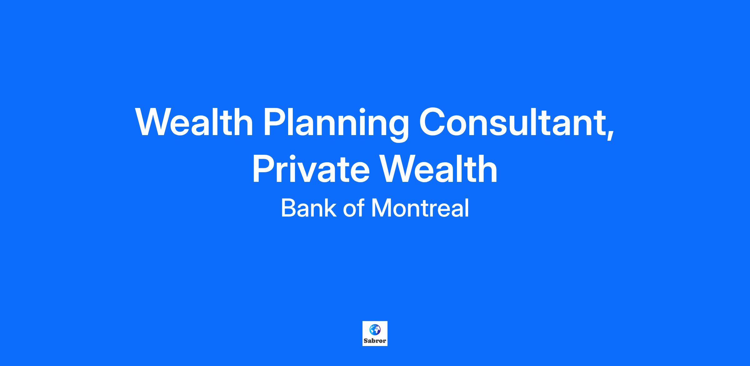 Wealth Planning Consultant, Private Wealth