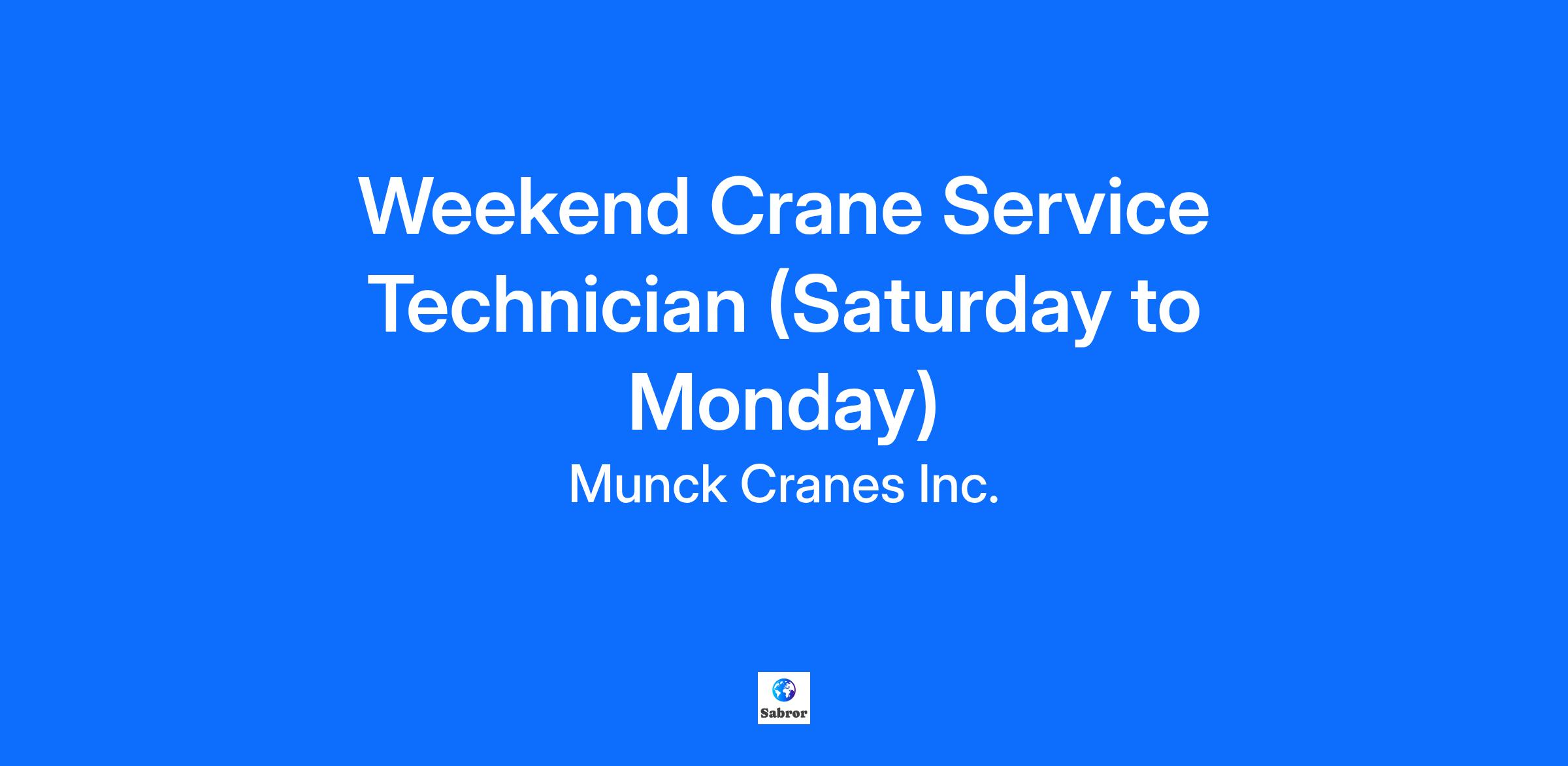 WEEKEND CRANE SERVICE TECHNICIAN Department: Munck Cranes Service Division Location: Based in Alliston, ON | Mondays in Stoney Creek, ON Are you a seasoned Crane Service Technician with significant hands-on experience? Munck Cranes Inc., a respected name in overhead lifting solutions for over 30 years, is seeking a dedicated professional to join our Weekend Shift Team. This is a unique opportunity to work a compressed, full-time weekend schedule while supporting our growing client base and advancing your skills in a specialized trade. Why Choose Munck Cranes? Family-owned, 30+ years in business: We prioritize quality, innovation, and mutual respect. Career growth: Internal advancement opportunities and ongoing technical training. Annual wage review: Conducted upon successful completion of probation. Supportive team: Join a collaborative, knowledgeable group of industry professionals. Compressed schedule: Work three days and enjoy four days off—ideal for work-life balance. Schedule & Work Details: Saturday & Sunday: 7:00 a.m. – 7:00 p.m. Monday: 8:00 a.m. – 4:30 p.m. Base location: Alliston, ON Travel: Mondays to our Stoney Creek location; regional travel as needed Compensation & Benefits: RRSP program with company-matched contributions (available after 3 months) Health benefits: Medical, dental, vision, and prescription coverage (after 3 months) Life insurance & LTD: Company-paid coverage included Company perks: Uniforms provided, safety shoe allowance, annual tool allowance Company vehicle: Provided for field service work What You’ll Be Doing: Inspect, troubleshoot, and repair overhead cranes and lifting devices Diagnose and resolve electrical, mechanical, and electronic issues Ensure compliance with CSA, CCOHS, and provincial safety standards Maintain company tools, equipment, and service vehicle Deliver exceptional customer service and technical support Mentor apprentices and participate in the on-call service rotation Qualifications: Minimum 10,000 hours of experience servicing overhead cranes (required) Certified Journeyperson Electrician (Maintenance) or Millwright Strong knowledge of crane inspections, troubleshooting, and repair Valid driver’s license with a clean driving abstract Customer-focused with strong communication and problem-solving skills Legally authorized to work in Canada Elevate Your Career – Apply Today! Submit your application online or reach out directly if you need support: 📞 905-561-2100 ext. 227 📧 hr@munckcranes.com Don't Meet Every Single Requirement? At Munck Cranes Inc., we value potential. If you’re excited about this role but don’t meet every qualification, we still encourage you to apply. You might be the right fit for this role—or one in the future.