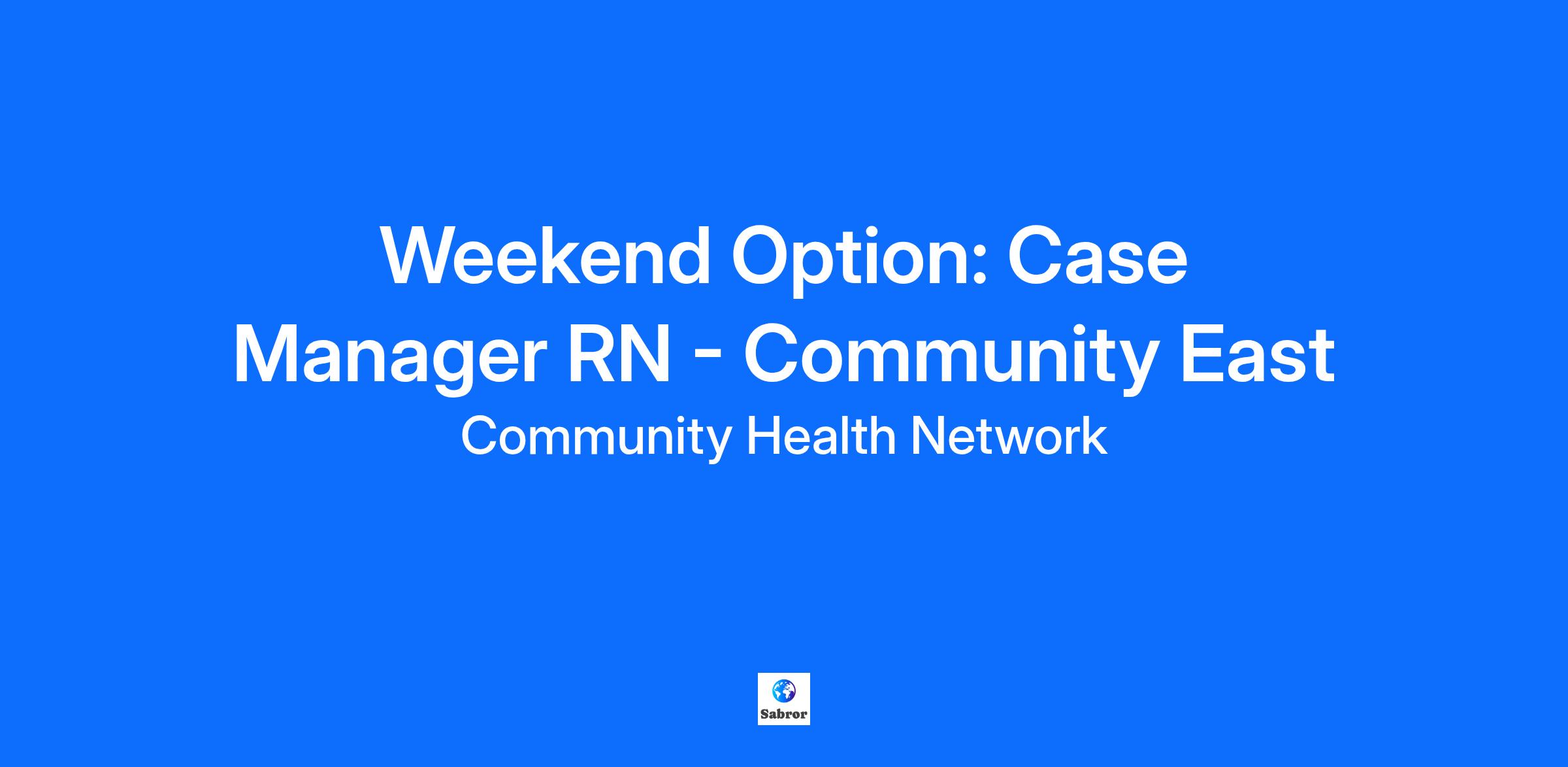 Join Community Community Health Network was created by our neighbors, for our neighbors. Over 60 years later, “community” is still the heart of our organization. It means providing our neighbors with the best care possible, backed by state-of-the-art technology. It means getting involved in the communities we serve through volunteer opportunities and benefits initiatives. It means ensuring our dedicated caregivers can learn and grow to stay at the top of their fields and to better serve our patients. And above all, it means exceptional care, simply delivered — and we couldn’t do it without you. Make a Difference Community East has a Weekend Option RN Case Manager position available. The Weekend Option Registered Nurse Case Manager is responsible for the assessment, planning, implementation, coordination, monitoring and evaluation of services across the continuum of care to ensure quality patient outcomes and appropriate utilization of health care services. Responsible for supporting the healthcare team towards a smooth transition from one level of care to another in support of the patient/family. To provide ongoing support and expertise through comprehensive assessment, planning, implementation, and overall evaluation of individual patient needs. The overall goal of the position is to enhance the quality of patient management and satisfaction, to promote continuity of care and cost effectiveness through the integrating and functions of case management, utilization review and management and discharge planning. Has accountability for the care, coordination, and discharge planning of inpatient and observation services. Exceptional Skills and Qualifications Graduate of National League for Nursing, Accreditation Commission for Education in Nursing or Commission on Collegiate Nursing Education accredited school of nursing. Licensed as a Registered Nurse by the Indiana Professional Licensing Agency - (required). Two years of recent clinical experience or three years recent hospital case management experience- (required). Certification in Case Management (CCM or ACMA) - (preferred). Team building skills with the ability to function independently and interdependently as a member of a network team. Demonstrates the ability to be flexible in work schedules and coverage at any site. Strong organizational and problem-solving skills. Exhibits openness to change and willingness to try new approaches to problem solving. Can establish rapport with a wide variety of people. Strong computer skills.