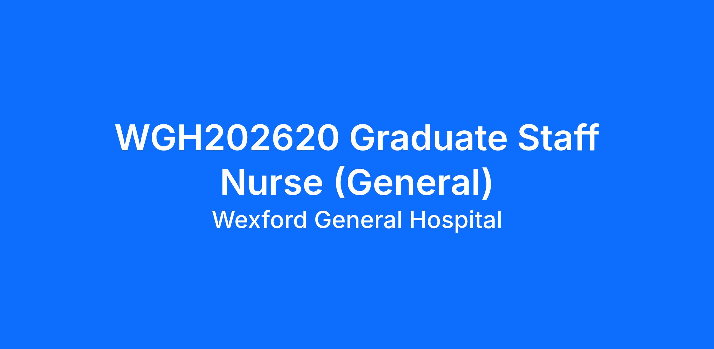 Wexford General Hospital are currently recruiting for Graduate Staff Nurses. The Graduate Staff Nurse will assess, plan, implement and evaluate care to the highest professional and ethical standards within the model of nursing care practiced in the relevant care setting. The staff nurse will provide holistic, person-centred care, promoting optimum independence and enhancing the quality of life for service users. They will report operationally to the CNM1/CNM2 and will be professionally accountable to the Director of Nursing.