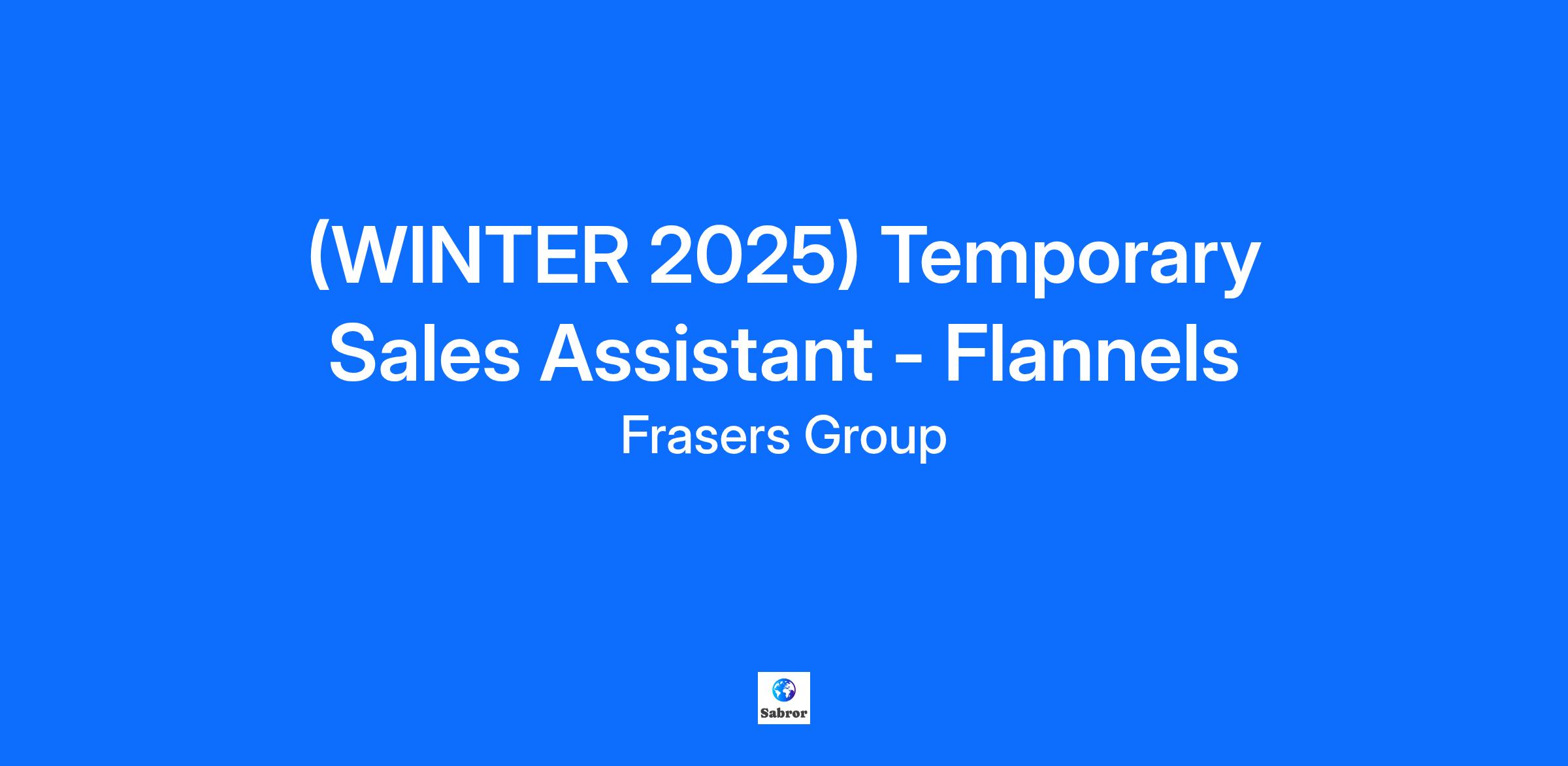 Company DescriptionAt Flannels, part of the Frasers Group, we don’t just offer jobs, we offer opportunities. Whether you're looking to gain retail experience over the busy Christmas period or develop your career in fashion, there’s a role to suit you. With stores across the UK and Europe, we’re redefining luxury retail.Why Join Us?Flexible Working Hours to suit your lifestyleMonthly Group Rewards & RecognitionUniform Discount and 20% Off across all Frasers Group brandsDiscounted Gym MembershipOpportunities for Career Development, including National Qualifications and internal trainingBe Part of a Fast-Paced, Supportive Team environmentJob DescriptionAs a Temporary Sales Advisor for the Christmas period (ending 4th January), you’ll bring energy, enthusiasm, and customer focus to every shift. From helping customers with product selections to maintaining the look and feel of the store, you’ll contribute to a first-class shopping experience while gaining valuable skills in a fast-moving, luxury retail environment.Sales & ServiceEngage with every customer to deliver outstanding serviceUse your product knowledge to offer tailored recommendationsSupport the team in achieving store goalsVisual MerchandisingHelp maintain store standards through stock presentation and replenishmentSupport visual merchandising standards that reflect the Flannels brandOperationsAssist with deliveries and stock processingEnsure pricing and product displays are accurateSupport stock counts and inventory accuracyQualificationsCustomer-focused with a passion for retail and fashionFriendly, confident, and a strong communicatorAdaptable with a flexible work ethicDriven to contribute to team successProud to represent the Flannels brand and valuesYou may be required to work weekends, evenings, and holidaysAdditional InformationAt Flannels, we live by our core values:Think Without Limits – Move fast, take bold action, and bring the team along with you.Own It and Back Yourself – Take responsibility for your role, master the basics, and drive results.Be Relevant – Stay connected to our people, our partners, and the planet.Due to high interest in these roles, we may close the vacancy early. To avoid missing out, we recommend submitting your application as soon as possible.Apply now and be part of the Flannels team this Christmas, where luxury meets exceptional service.Engagement date ends - 4th January 2026