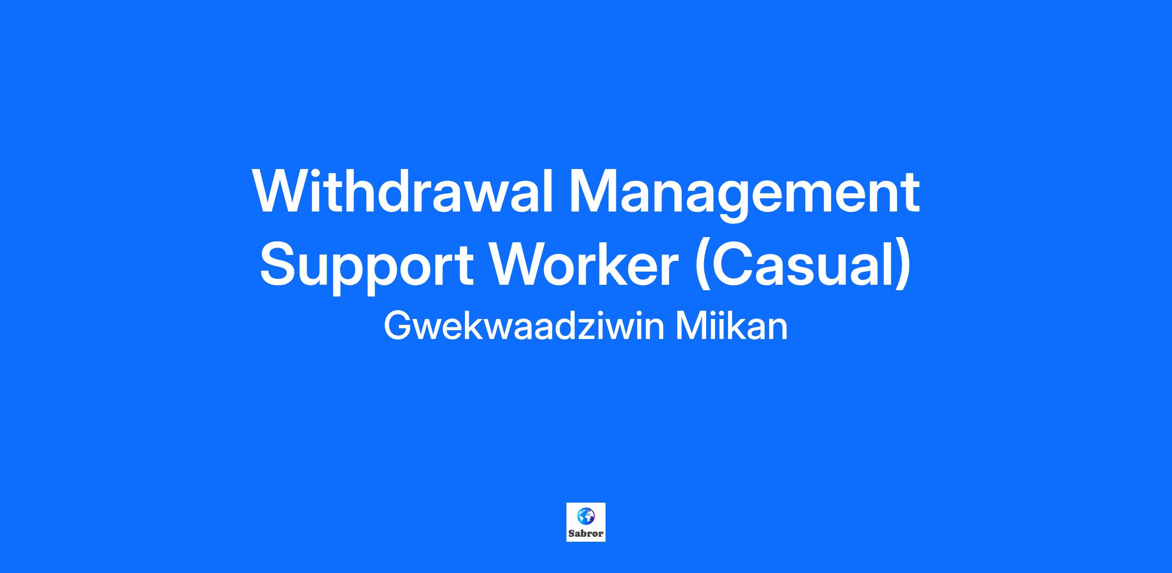 GWEKWAADZIWIN MIIKAN EMPLOYMENT OPPORTUNITY INTERNAL/EXTERNAL POSTING Withdrawal Management/Harm Reduction Support Worker (Casual Position) Position Description: A casual position responsible for the support of acute withdrawal, distribution of harm reduction supplies, safe/flex beds, and Opioid Agonist Tapering services as part of the Gwekwaadziwin Miikan continuum of services. Responsibilities and Duties: Reporting to the Withdrawal Management/Harm Reduction Team Leader Responsible for supporting the intake of program participants Electronic file and paper file management Communicate with participants and their families about the program Supporting referrals to external organizations Responsible for liaising with community organizations Group and one-to-one interactions Assist in implementation of research and outcome measurement projects Various administrative duties as needed Qualifications: Minimum requirement is a post-secondary education in social services, nursing, or other related human service diploma, with mental health and addictions training Preference given to an Individual of Anishinaabe ancestry with Knowledge and understanding of Anishinabek history, clan systems, protocols, etiquette, culture, traditions, and ceremonies Experience working in Mental Health and Addictions field Experience working in the Withdrawal Management sector and knowledge of best practices Demonstrated interpersonal and communication skills (both written and verbal) Ability to prioritize multiple responsibilities Mature individual who can work independently with preference given to individuals living a traditional lifestyle and being on a life-long journey in traditional knowledge Requirements: Possesses a valid Ontario class ‘G’ driver’s license in good standing with access to a reliable vehicle Able to work weekend shifts Able to work 12-hour shifts Minimum availability of 3 shifts per month Must have a relevant diploma and work experience Wage: Starting at $24/hour Closing Date: Open until filled To Apply: Please complete the application online at gwek.bamboohr.com/careers Contact scorbiere@gwek.ca with any questions. We thank all applicants for their interest, however, only those applicants under consideration will be contacted for an interview.