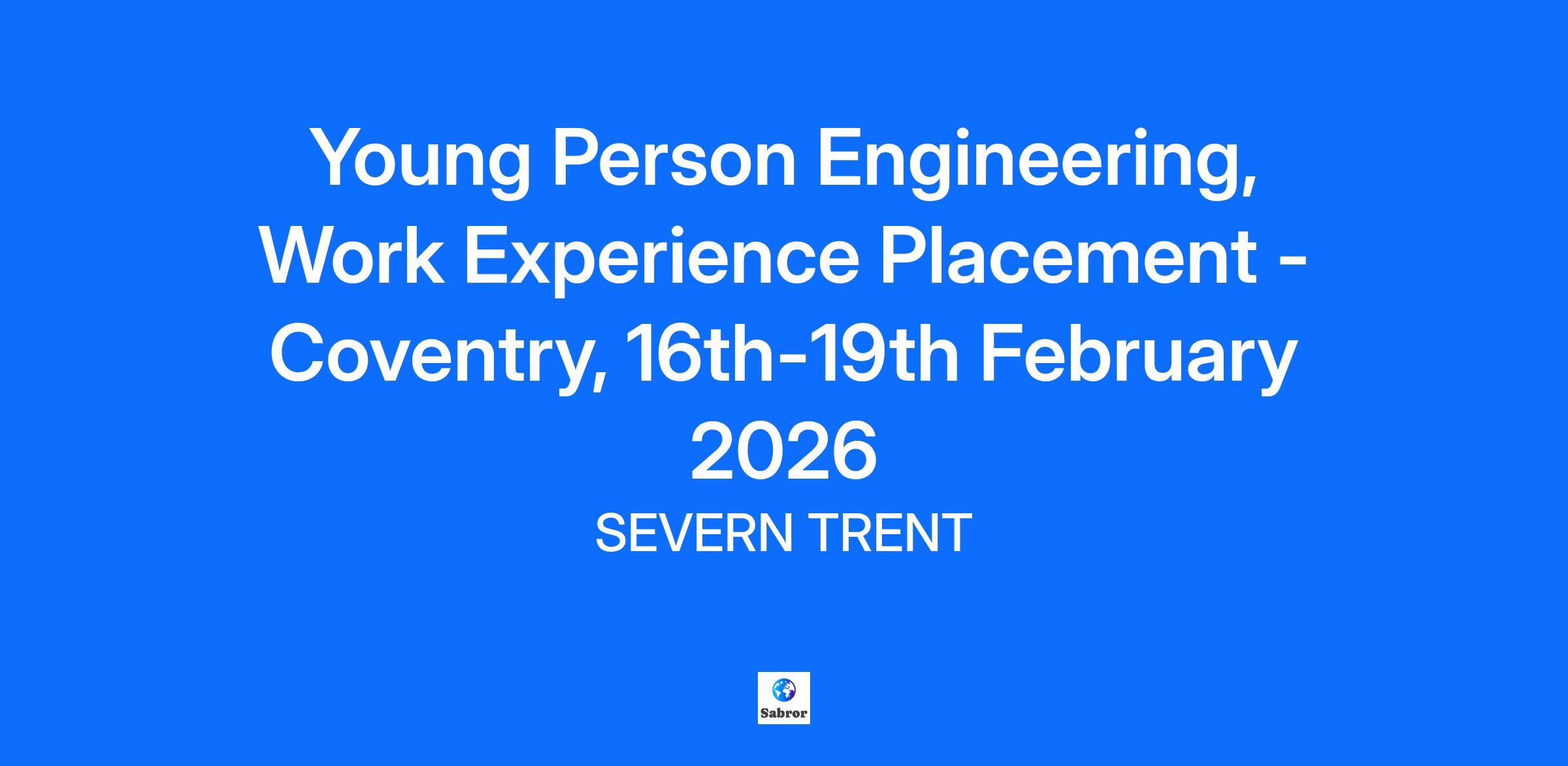 Student Engineering, Work Experience Placement –Coventry, 16th-19th February 2026 Location: STC-Severn Trent Centre, 2 St Johns Street CV1 2LZ Coventry Date – Monday 16th – Thursday 19th February 2026 (4-days) Who it's for: Young individuals between 14 and 18 years old, who are interest in work experience What’s This All About? Interested in civil engineering and how designs shape the world around us? In this placement, you’ll join our Plug & Play team, where we work on developing and improving construction methods and structures. Right now, we’re focused on designing better precast concrete tanks and improving shaft tank designs—key parts of water infrastructure. What You’ll Learn: Communication – Talking and listening clearly Teamwork – Working with others to get things done Problem Solving – Thinking through challenges Confidence – Sharing your ideas and asking questions Time Management – Staying organised and focused Organisation – Keeping things tidy and on track Who Will Support You? You’ll be guided by friendly staff who will help you settle in, answer your questions, and make sure you get the most out of your time with us. What You’ll Take Away: By the end of your placement, you’ll have: A better idea of what it’s like to work in a professional environment New skills you can use in school and future jobs Great experiences to talk about in interviews or on your CV Important Notice – Research Trial Participation This work experience opportunity is part of a research trial being conducted by Severn Trent in partnership with Ipsos and the Youth Futures Foundation. The trial aims to understand how work experience impacts young people’s skills and future career outcomes. By applying for this placement, you are also consenting to take part in the research trial. This involves your application data being used for research purposes and you may be invited to complete short surveys or interviews (participation in these is optional). If you are under 16 years old, you must upload a signed parental consent form with your application for it to be considered. You will be asked to confirm you have attached your parental consent in the application, Consent will be verified and check before approving your eligibility See website for additional information, you must consent to take part in our work experience programme.