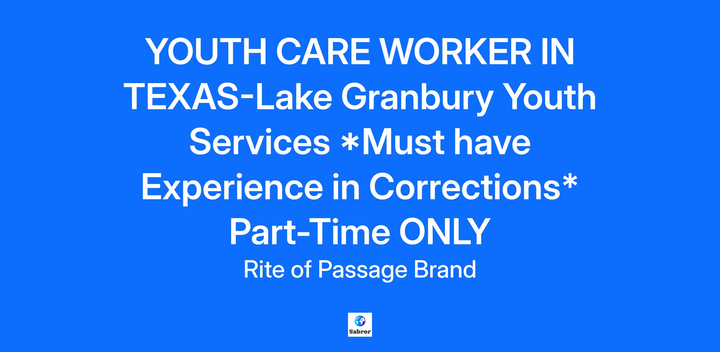 â¨Join a group of passionate advocates on our mission to improve the lives of youth! Rite of Passage Team is hiring a Youth Care Worker at Lake Granbury Youth Services in Granbury, Texasâ¨